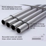 These reusable straws are the best metal straws you can buy for Pint (16oz) or 12oz Mason jars! The rounded ends are noticeably less sharp and more comfortable in your mouth, and they are safer in the event you accidentally poke yourself! The 6.2mm internal diameter is a great all-purpose size. They work well for water, juice, iced tea, coffee, soda, etc and also smoothies, yogurt, milk shakes, or protein shakes.